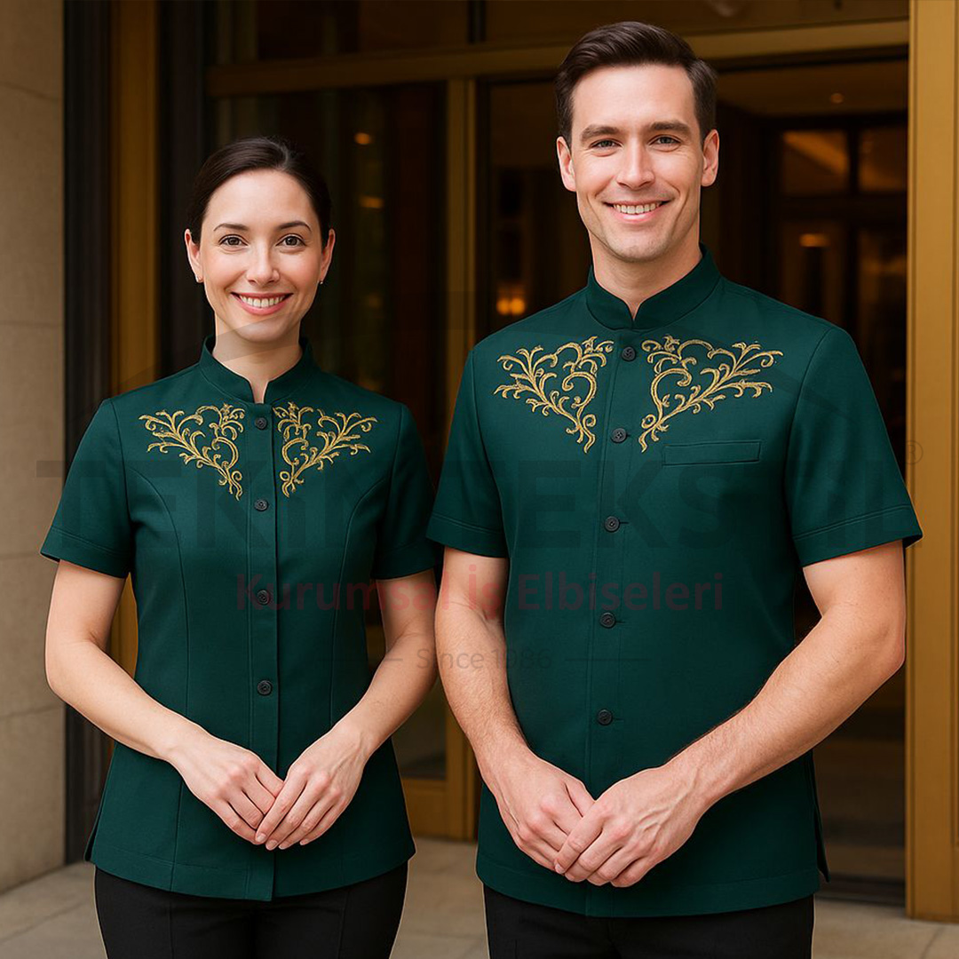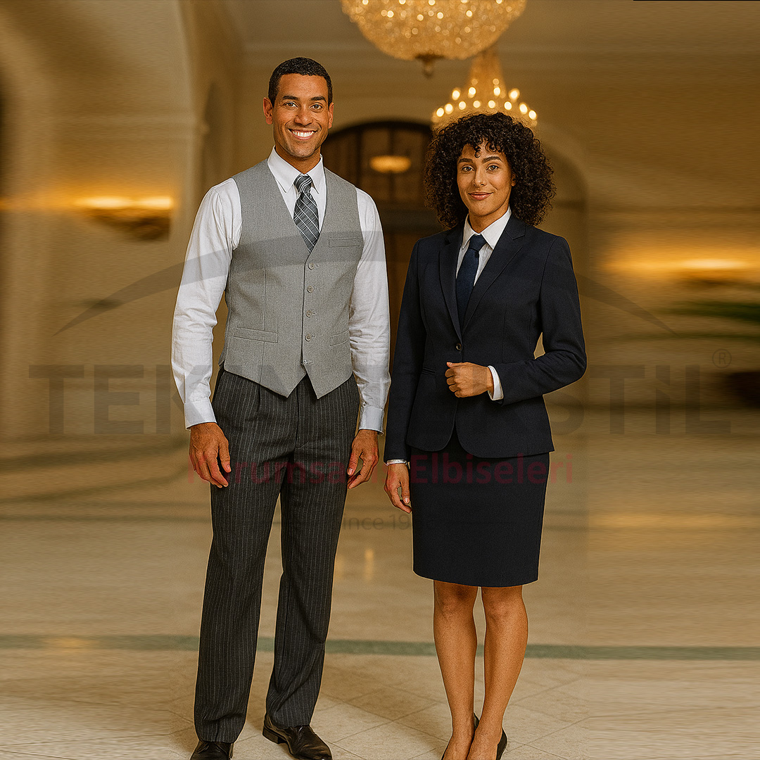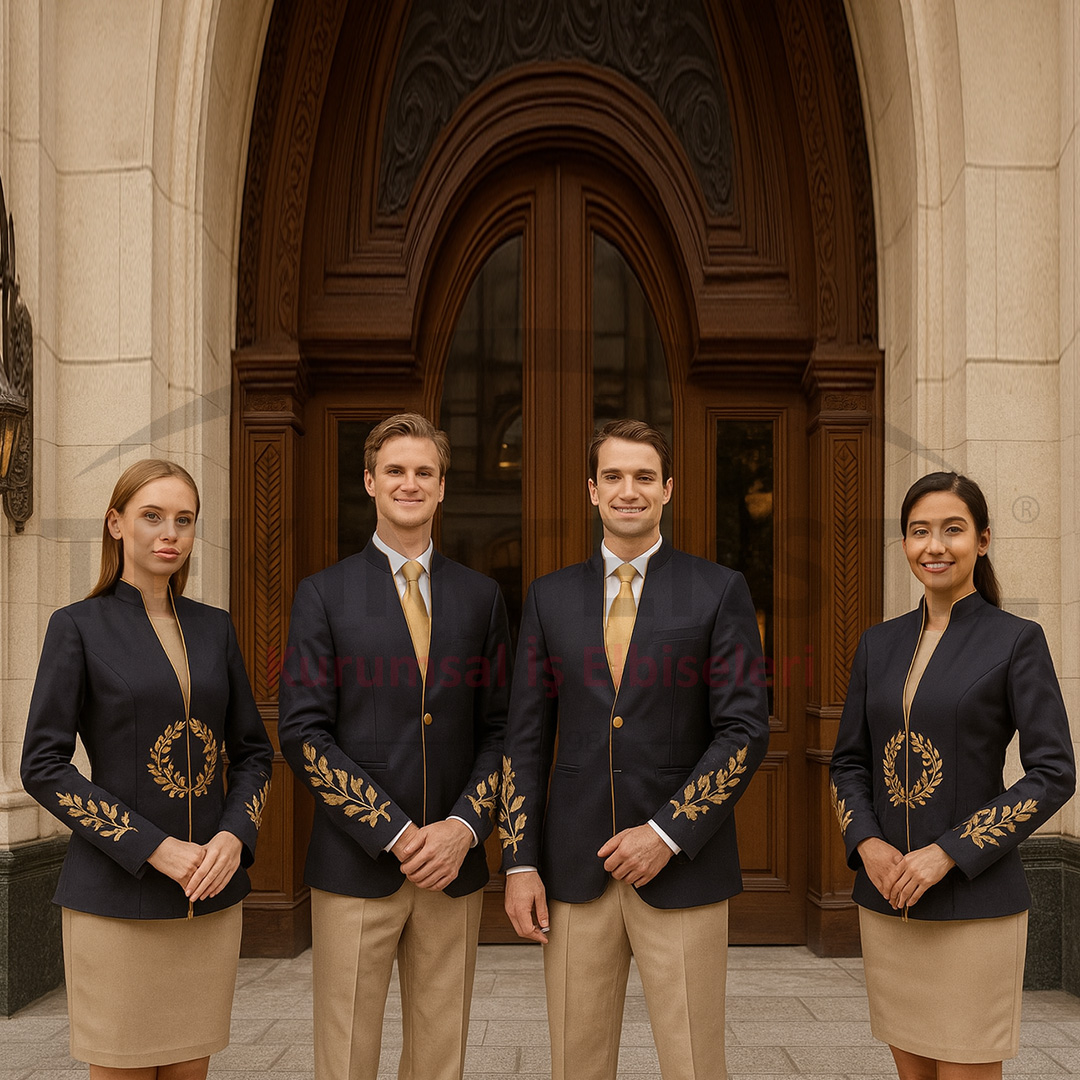 Tekin Tekstil’den Karşılama Zarafeti: Otel kapı görevlileri, misafirlerin karşılaştığı ilk yüz, ilk selam ve ilk izlenimdir. Tekin Tekstil olarak, bu kritik temas anını daha da güçlü kılmak adına, kapı görevlileri için hem profesyonel hem de zarif üniformalar tasarlıyoruz. Sıcak bir gülümsemeyi tamamlayan bu özel kıyafetler, kaliteli hizmetin daha ilk adımda hissedilmesini sağlar. Detaylara verilen önem, kumaş seçimindeki kalite ve estetik duruş; Tekin Tekstil farkıyla buluşarak otelinize prestij kazandırır. Her üniforma, otelin renk skalası ve kurumsal kimliğiyle tam uyum içinde tasarlanır. Şıklığın yanı sıra rahatlığı da ön planda tutan kesimler, personelin gün boyu özgürce ve konforla hareket etmesini mümkün kılar. Tekin Tekstil, kapı görevlisi üniformalarını sadece bir kıyafet değil, otelinizin prestijli duruşunun bir uzantısı olarak ele alır. Çünkü ilk izlenim, Tekin Tekstil kalitesiyle başlar. İlk karşılamada zarafet, detayda Tekin Tekstil imzası.